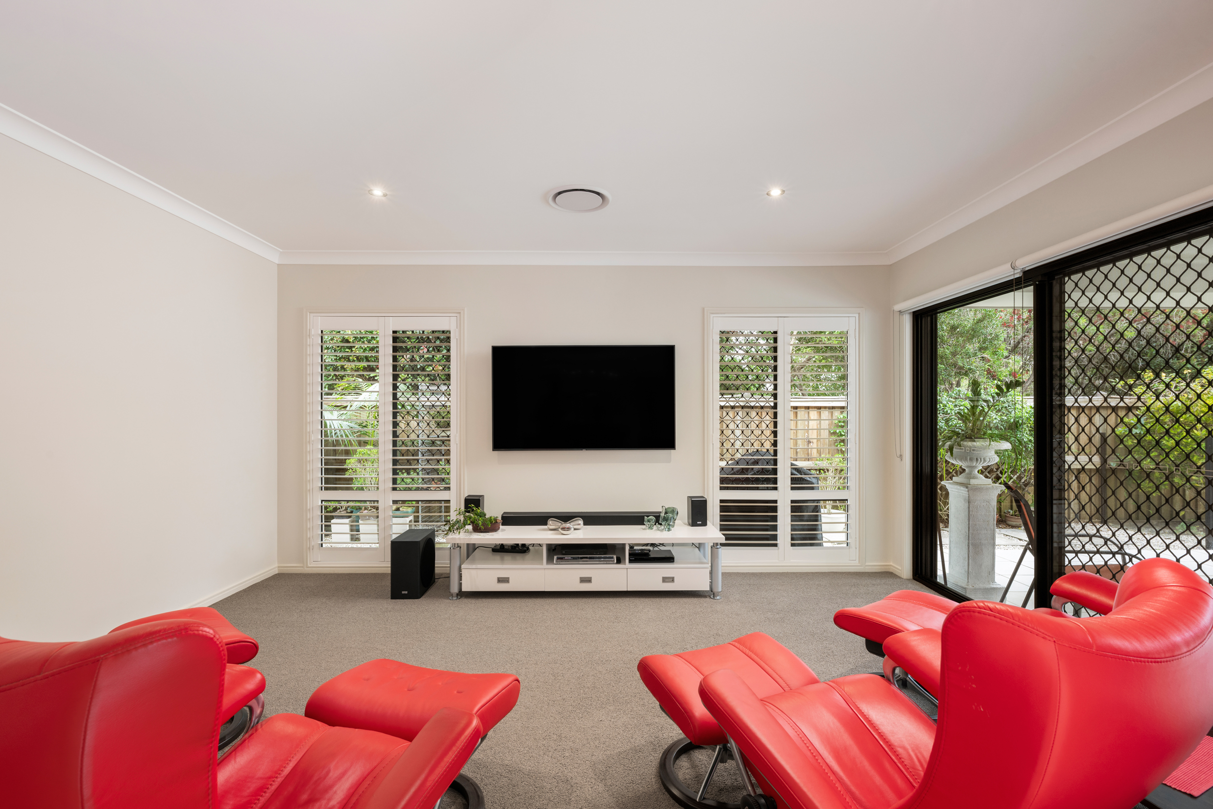 - Wired-in security system, intercom, automatic lighting & security screens