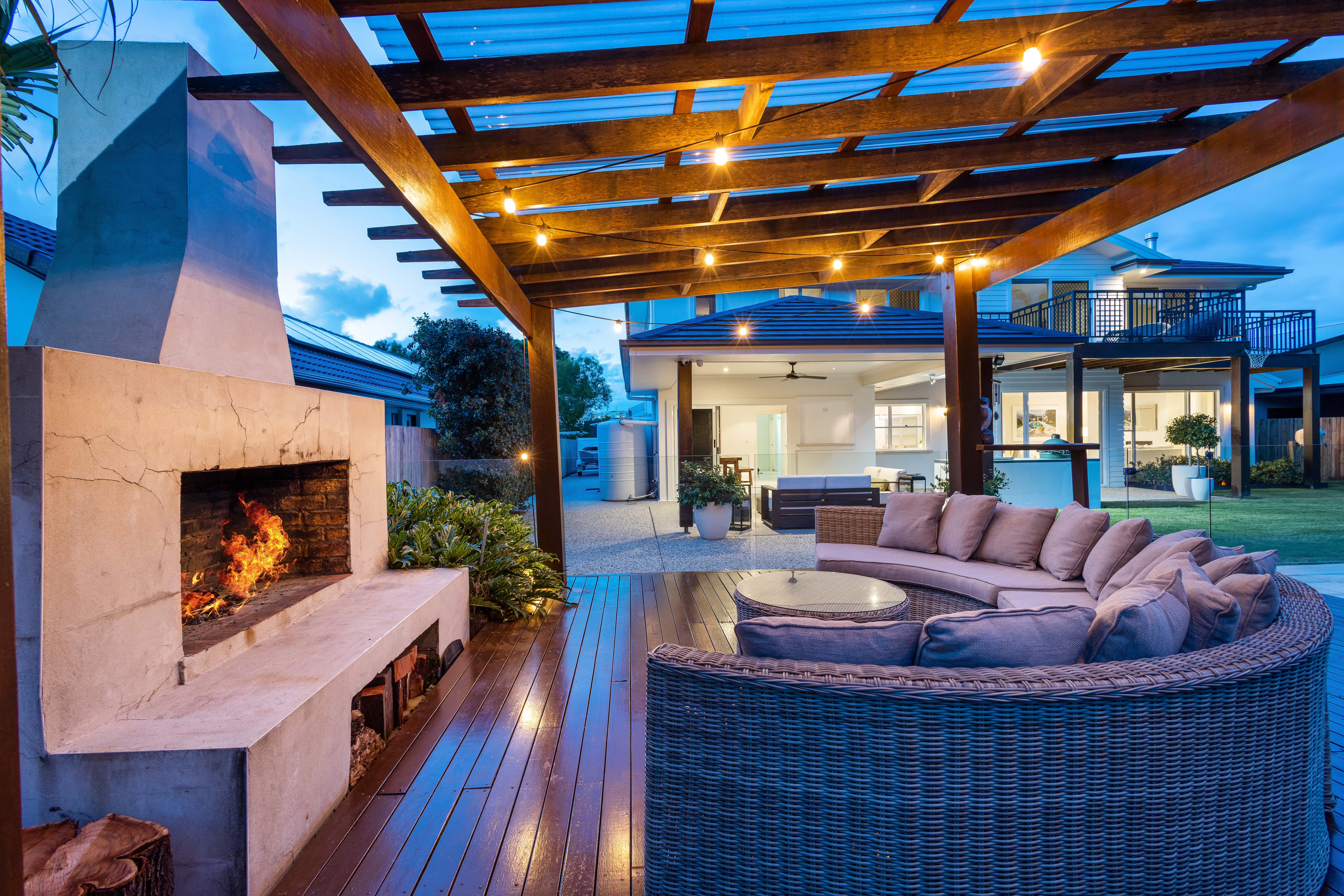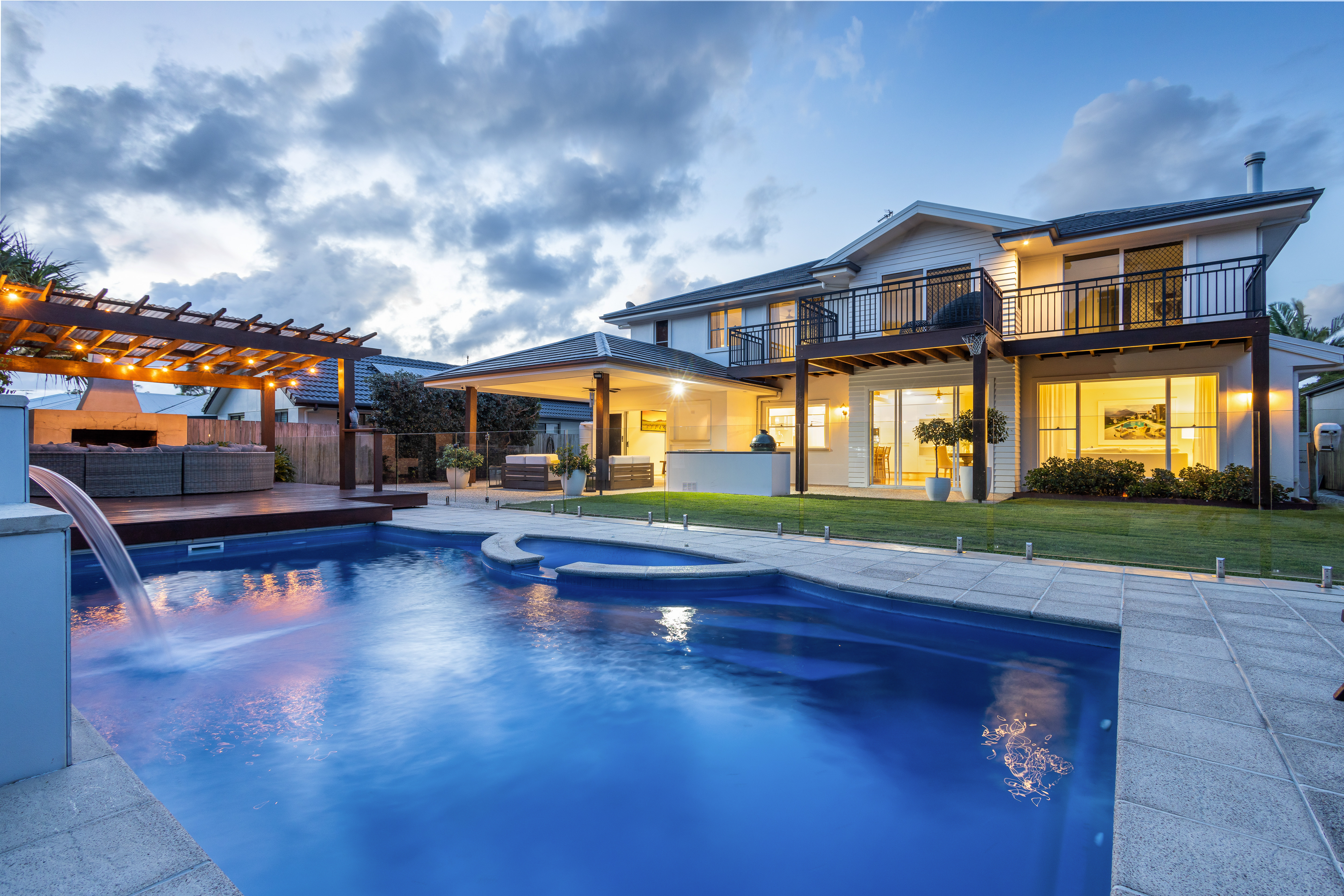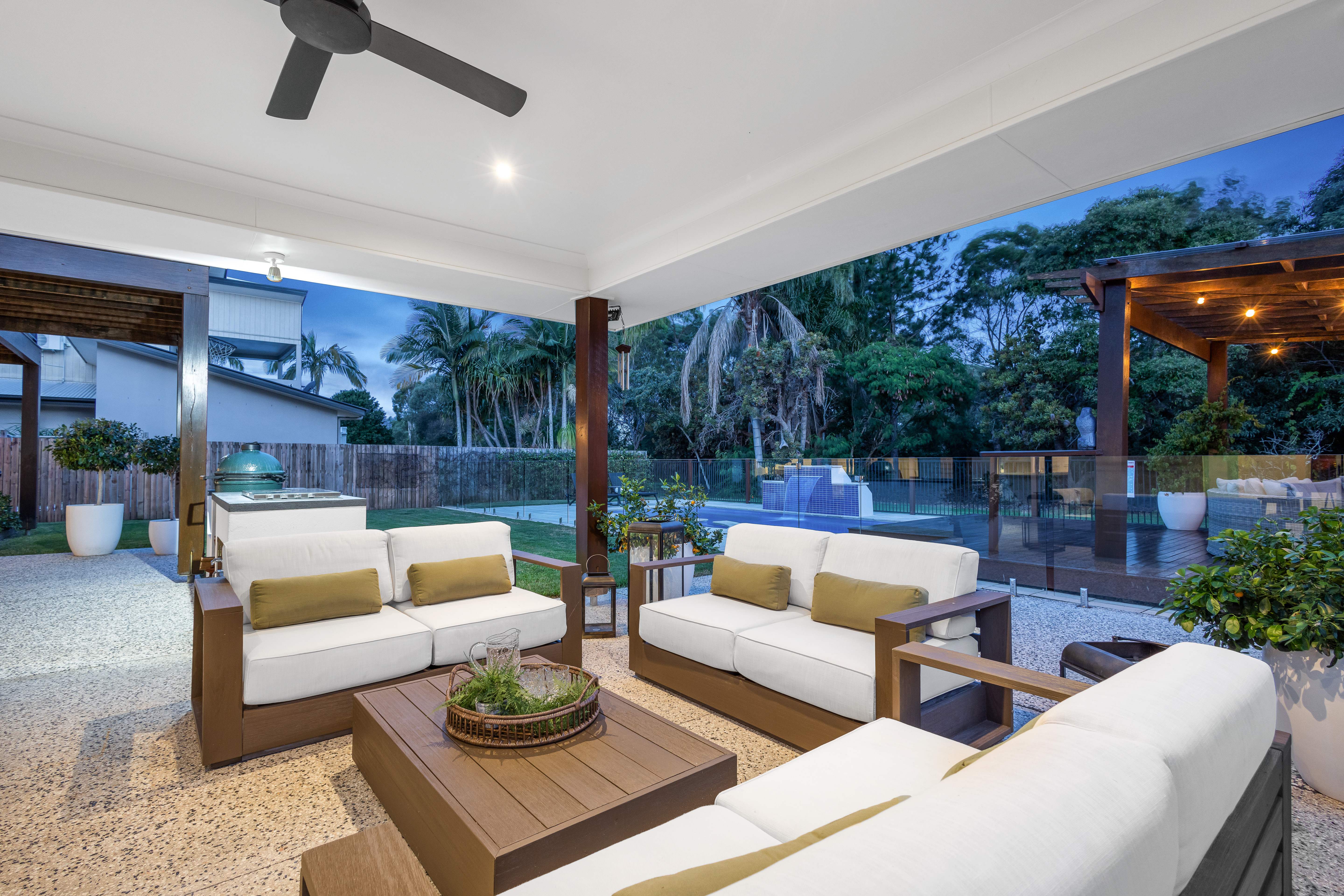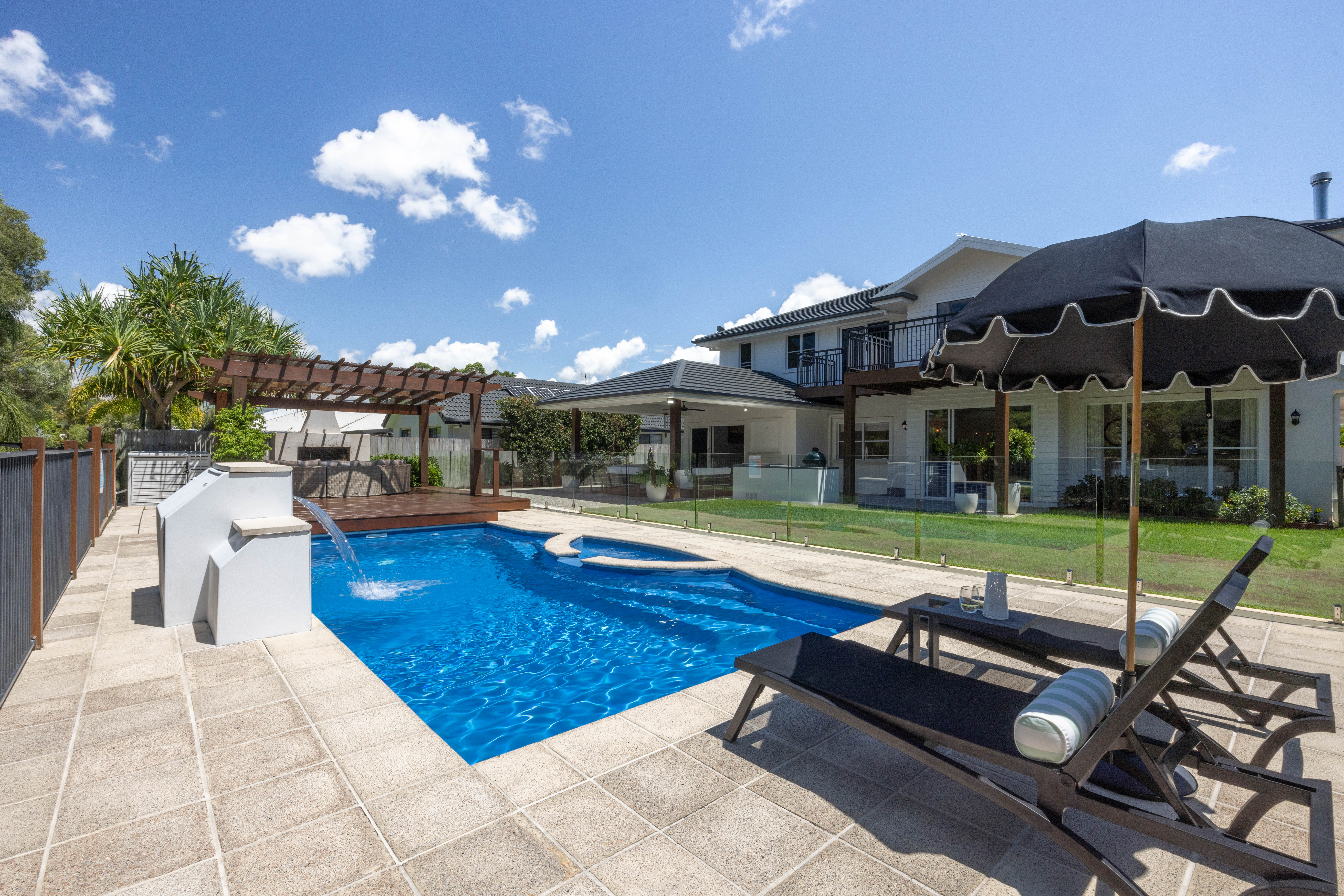 The indoor entertainment area seamlessly connects with the outdoor entertainment area, which encompasses an inviting outdoor kitchen with an inbuilt Beef-Eater BBQ, alfresco patio, and a custom-built fireplace. This harmonious fusion creates an idyllic setting for hosting gatherings and crafting cherished memories with your loved ones.