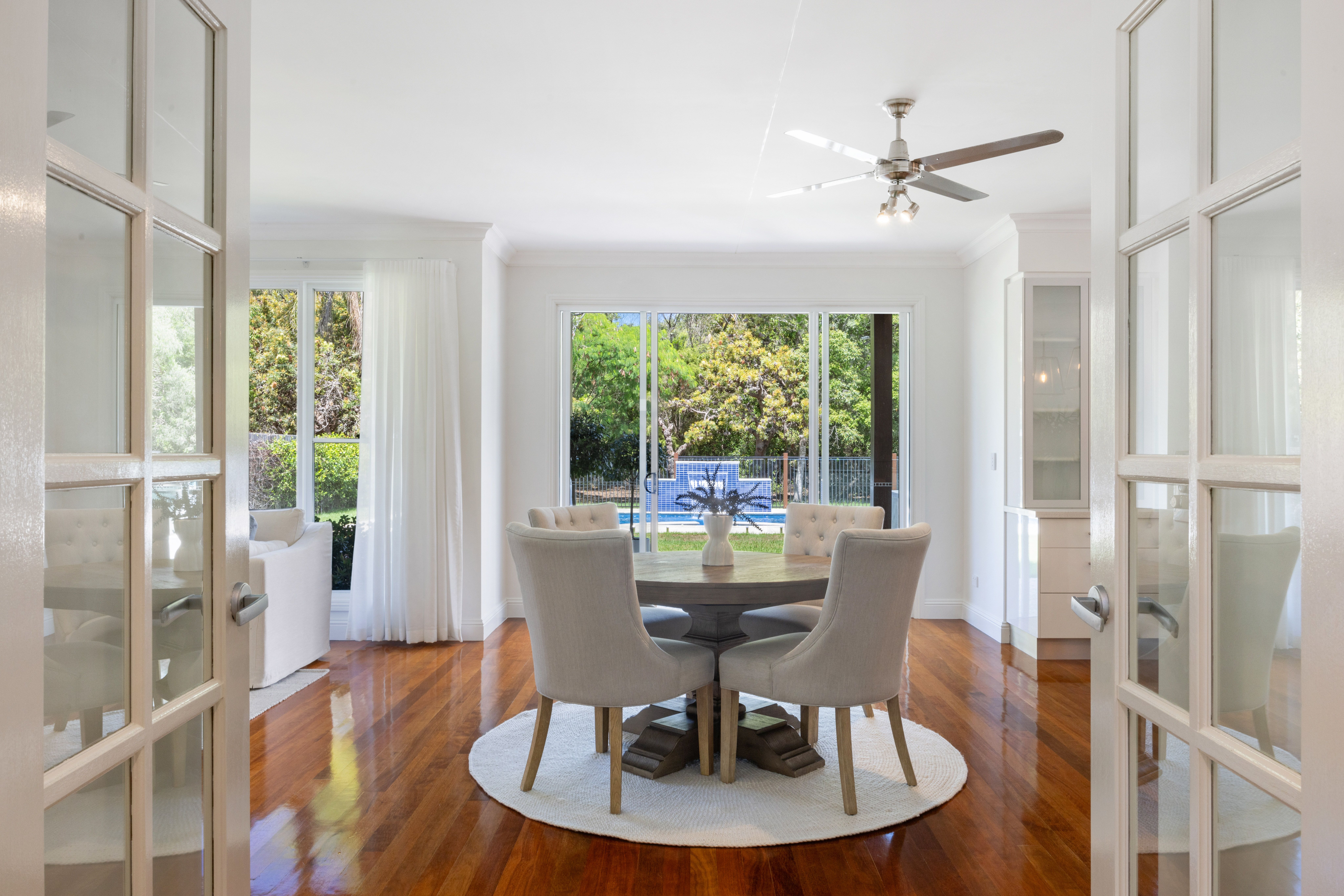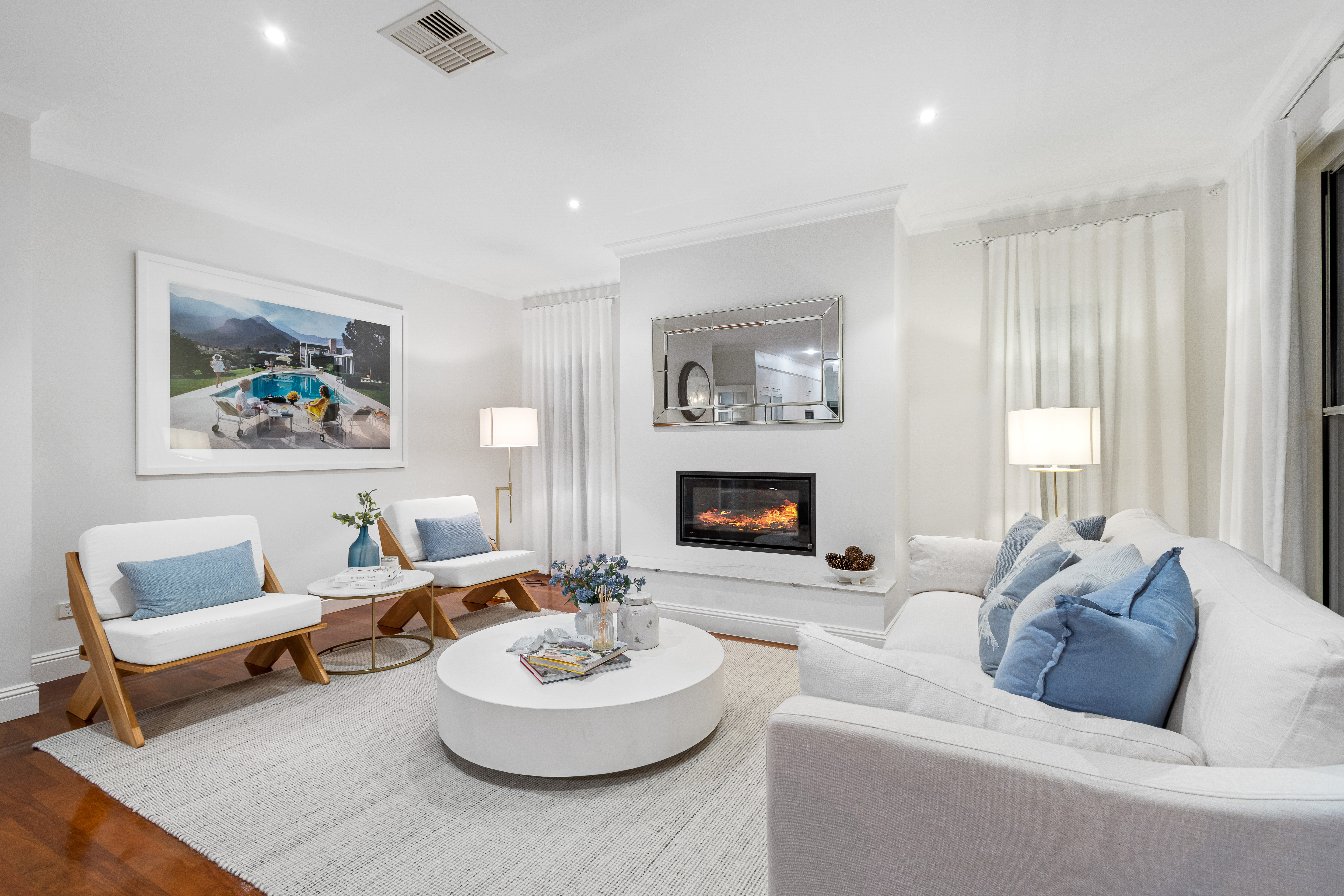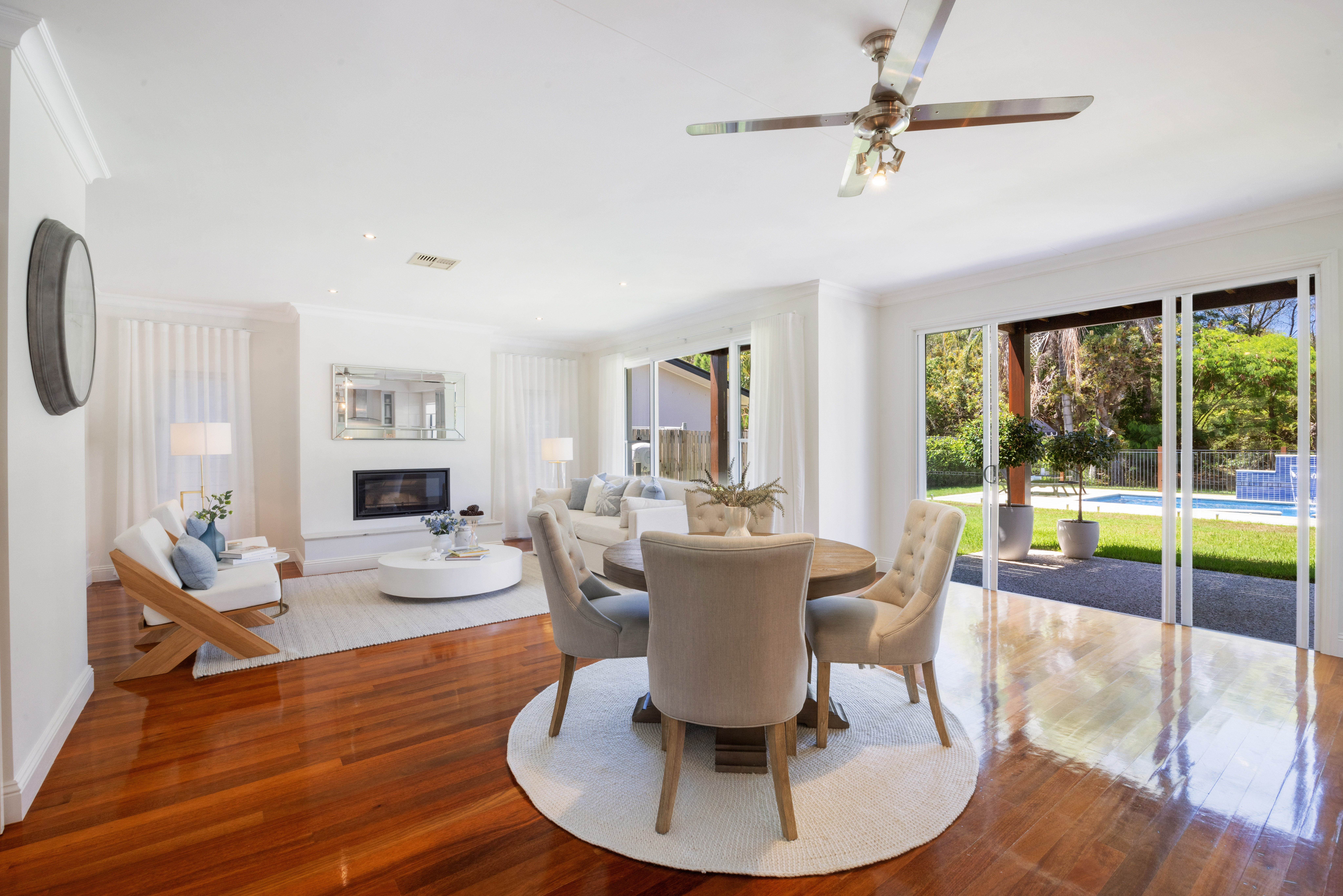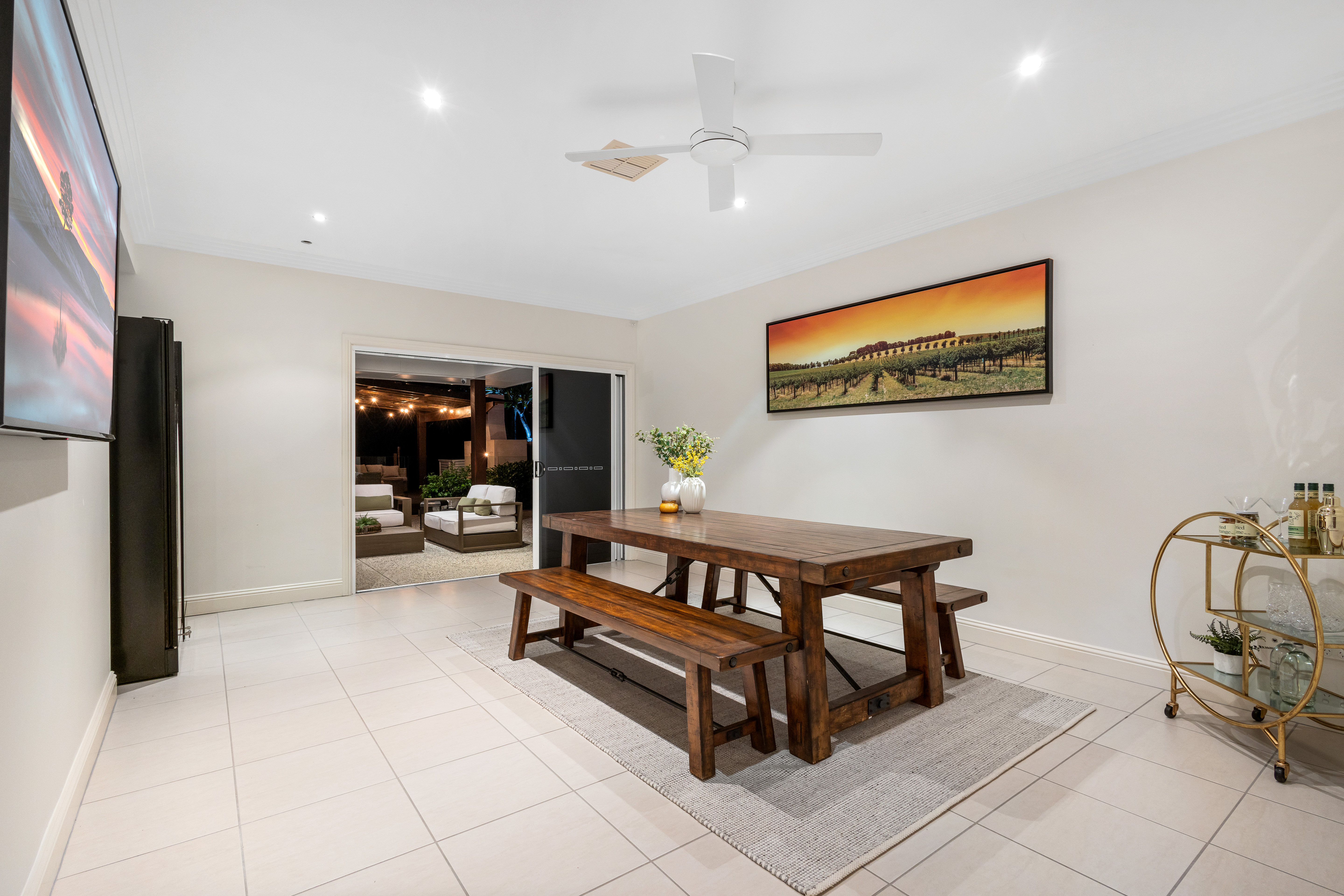 The indoor entertainment area seamlessly connects with the outdoor entertainment area, which encompasses an inviting outdoor kitchen with an inbuilt Beef-Eater BBQ, alfresco patio, and a custom-built fireplace. This harmonious fusion creates an idyllic setting for hosting gatherings and crafting cherished memories with your loved ones.