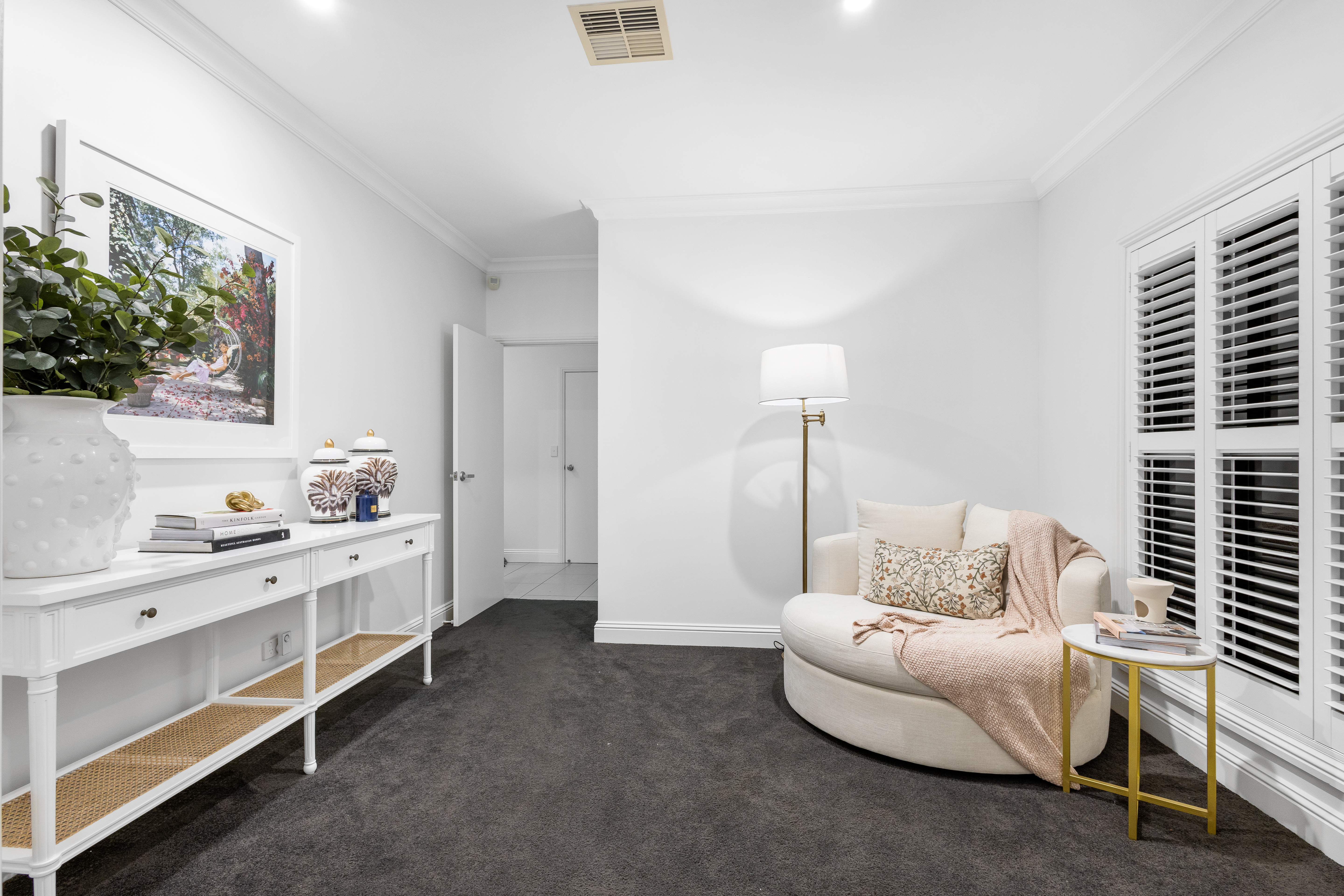 - Plantation shutters throughout