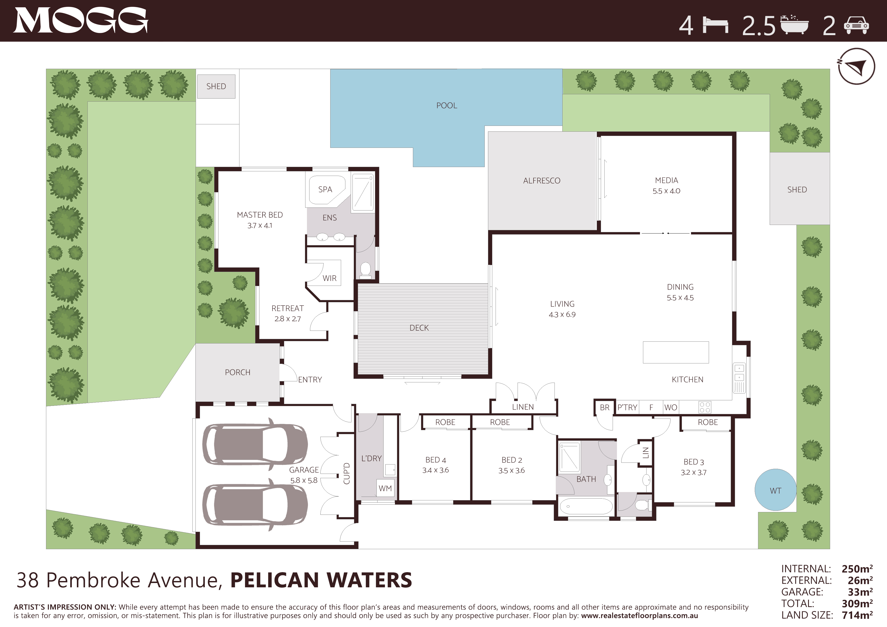 • Large 714 sqm landscaped block